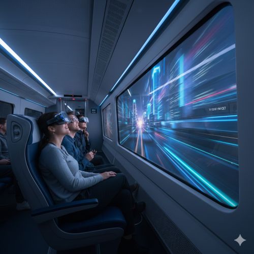Así, mientras uno va en el tren, los efectos sonoros y visuales ─por las ventanas se retransmiten imágenes creadas por ordenador─ pretenden dar la sensación de velocidad, lo que queda desmentido cuando llegas a destino y ver las muchas horas transcurridas.